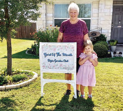 The Elgin Garden Club selected the yard of Gabriel and Rosalinda Escalon at 202 Martin Luther King Ave. as the Yard of the Month for September. Their front yard features hibiscus lining the sidewalk, along with yellow bells, mums, roses, vinca, cosmos, shell ginger, verbena and amaranth. A live oak anchors the yard, surrounded by fig, pomegranate and palm trees. The local gardening group meets the first Tuesday of each month at Grace Lutheran Church Fellowship Hall, 801 W. 11th St. Courtesy photos