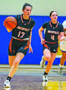 Smithville senior Sydney Brenner takes the ball up court in a postseason game last year. Photo by Steve Doak