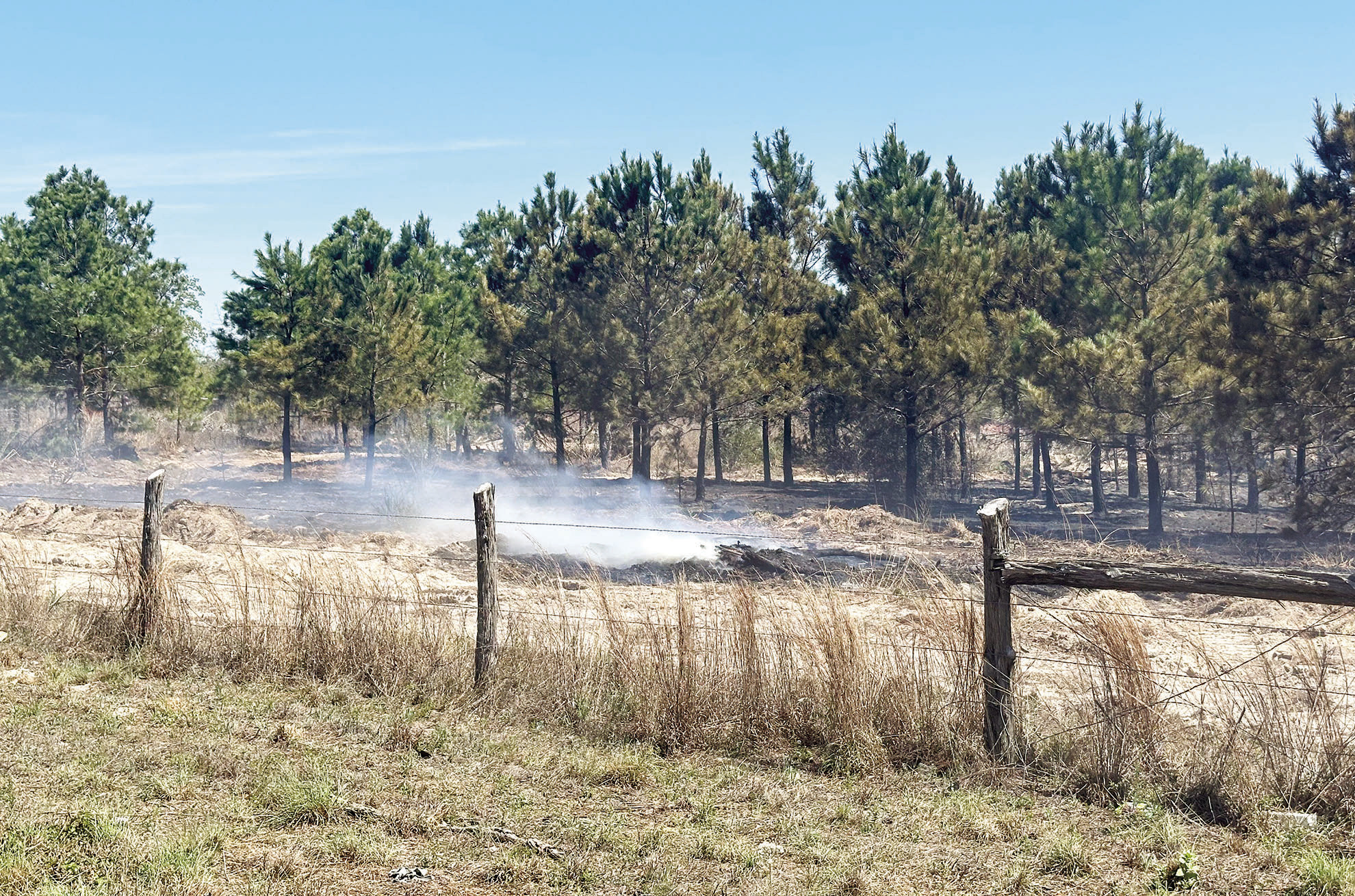 Grass smolders March 23 along the edge of the Spring Pine Fire. Photo by Dylan Roddy
